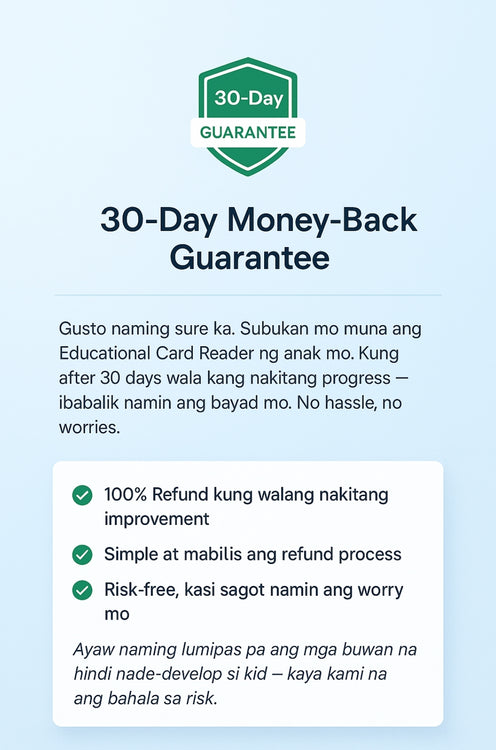 Simple lang gamitin — ipasok lang ang flashcard at babasahin ng device nang malinaw ang salita at ipapakita ang larawan.