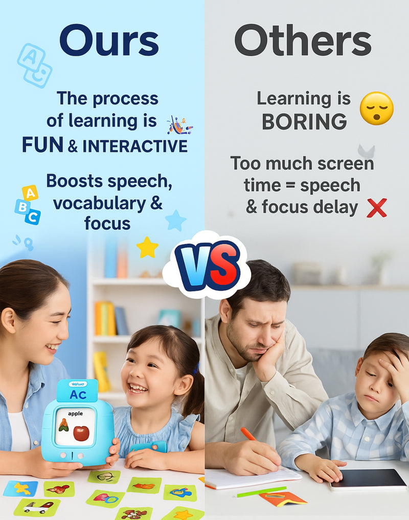 Turns Learning Into Playtime Interactive flash cards with voice help kids absorb new words quickly making education exciting and effortless.